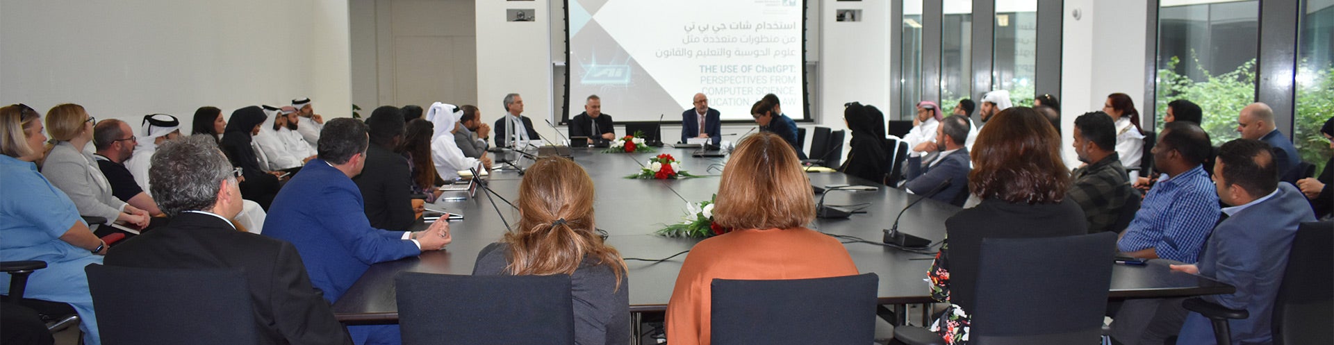 استضافت كلا من كلية القانون، وكلية العلوم الانسانية والاجتماعية حلقة نقاشية حول انتشار تقنية "شات جي بي تي" ChatGPT في مجالات علوم الحاسوب والتعليم والقانون، وذلك في أحدث نسخة من سلسلة حوارات "القانون والتكنولوجيا".