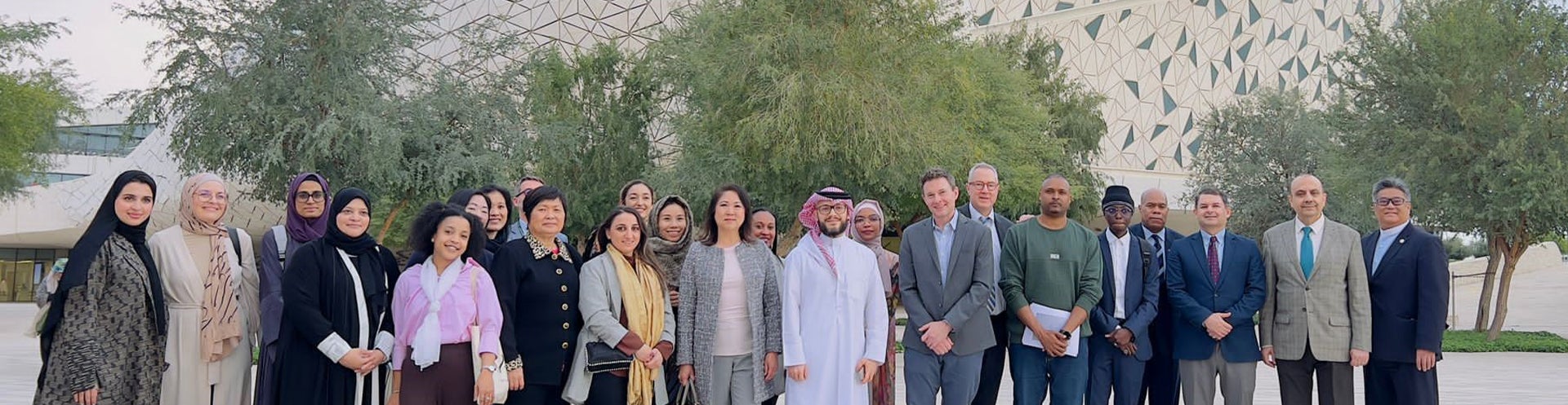 استضافت كلية السياسات العامة بجامعة حمد بن خليفة 17 طالباً من كلية "روسييه" للتعليم بجامعة جنوب كاليفورنيا، وذلك في إطار زيارة علمية ضمن برنامج الدكتوراه التنفيذي العالمي في التعليم.