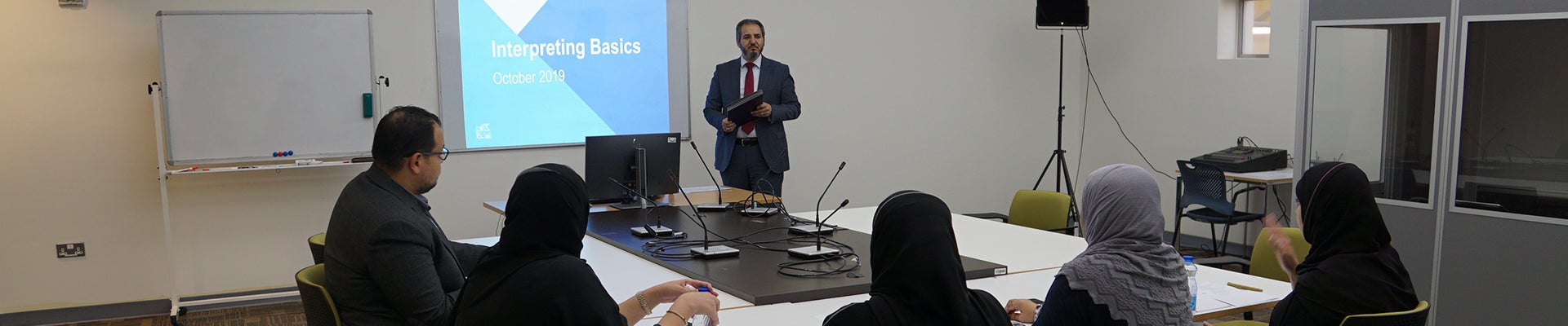 وأضاف: "ستُمكن الورشة المشاركين من إجراء تدريبات مباشرة على الترجمة الشفوية باستخدام مجموعة متنوعة من النصوص واللهجات، وستطور مهاراتهم في مجال الترجمة الشفوية في واحدة من مقصوراتنا الحديثة. وسيساهم حضور هذه الورشة في إرساء الأساس للمشاركين لتطوير المهارات المتقدمة التي يستخدمها المترجمون الشفويون المتخصصون."