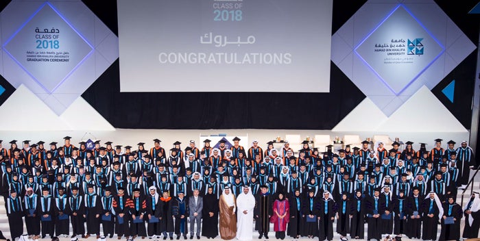 احتفلت جامعة حمد بن خليفة، عضو مؤسسة قطر للتربية والعلوم وتنمية المجتمع بتخريج دفعة عام 2018 في يوم الأحد الموافق 6 مايو في مركز قطر الوطني للمؤتمرات. وشهدت الجامعة هذا العام تخريج أول دفعة من طلاب الدكتوراه في العلوم والهندسة، وطلاب برنامج (دكتور في القانون). كما عززت الجامعة نموها السنوي بتخريج أكبر دفعة من الطلاب حتى اليوم.