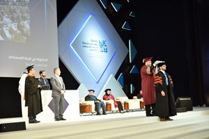 "ويسعدنا كذلك أن نحتفل اليوم بمنح الجامعة لشهادتي الدكتوراه ودكتور في القانون للمرة الأولى، لأن ذلك يُعد محطة مفصلية في مسيرتنا الرامية إلى توفير فرص التعلّم مدى الحياة، وتمكين أجيال المستقبل لمواجهة التحديات. هؤلاء الطلاب هم المستقبل الذي نرنو إليه، وإليهم أتوجه بأصدق الأمنيات بتحقيق المزيد من النجاح والتوفيق."