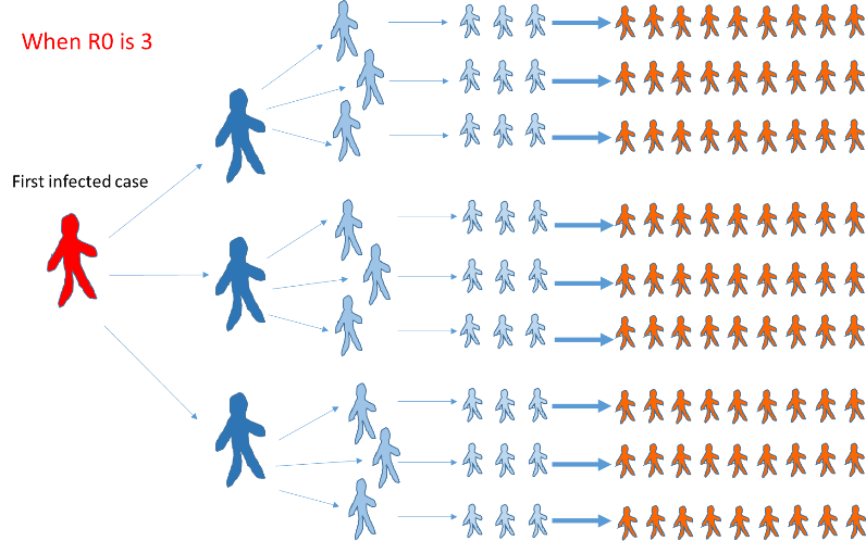 لتفسير هذا الأمر ببساطة، كم يبلغ عدد الأشخاص الذين يمكنهم افتراضًا أن يصابوا في غضون خمسة أيام من شخص واحد مصاب عندما تكون نسبة التكاثر 3؟ الجواب 81 حالة! هذا المصاب، خاصة إذا كانت الأعراض لا تظهر عليه، يسمى "ناقل فائق للعدوى."