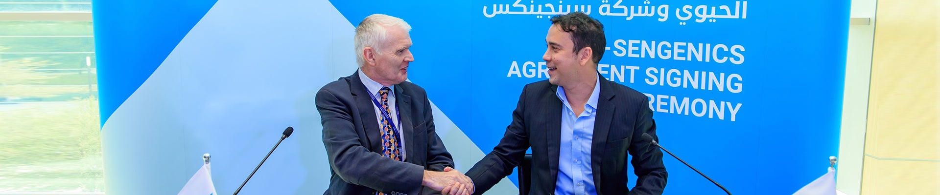 وخلال فعالية خاصة عُقدت في شهر أكتوبر للاحتفال بهذه الشراكة، وقَّع ممثلون من كلتا المؤسستين على اتفاقية مدتها خمس سنوات تنص على إنشاء منصة بهدف ربط معدات المعهد بمصفوفات البروتين التابعة لشركة سينجينكس من أجل تسهيل الأبحاث الرامية لاكتشاف العلامات الحيوية للأمراض. وتغطي الاتفاقية ثلاثة مراكز بحثية تابعة للمعهد، وهي مركز بحوث السرطان، ومركز بحوث السكري، ومركز بحوث الاضطرابات العصبية. وبموجب الاتفاقية، سيكون المعهد المقدم الوحيد لهذه الخدمة في قطر، مع تمتعه بحقوق ترخيص حصرية في منطقة الشرق الأوسط وشمال أفريقيا، والهند، وباكستان، وتركيا.