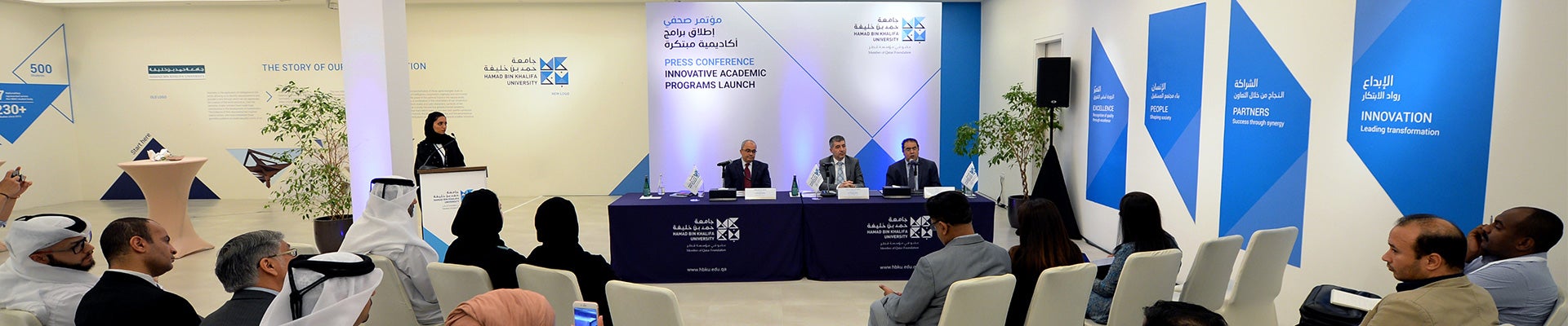أعلنت جامعة حمد بن خليفة اليوم عن إطلاق ست درجات أكاديمية جديدة، تشمل برامج الماجستير والدكتوراه في إطار خطط التوسع التي تعكس نمو الجامعة كمؤسسة رفيعة المستوى للتعليم العالي، وتعزز مكانتها كوجهة رائدة للدراسات العليا في دولة قطر والمنطقة. وجاء الإعلان الرسمي من قبل الدكتور أحمد مجاهد عمر حسنه، رئيس جامعة حمد بن خليفة؛ والدكتور عماد الدين شاهين، عميد كلية الدراسات الإسلامية؛ والدكتور منير حمدي، عميد كلية العلوم والهندسة في المدينة التعليمية. هذا وأصبح باب القبول في جميع البرامج الجديدة مفتوحًا الآن.