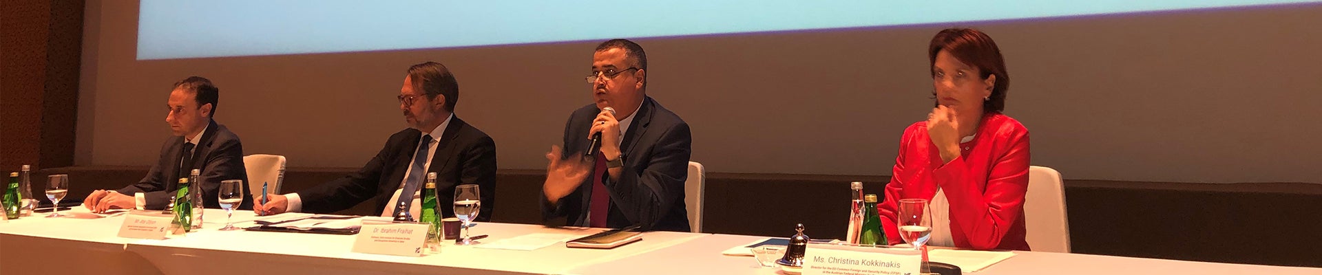 وأدار الدكتور ستيفن إم رايت، العميد المشارك والأستاذ المشارك في كلية العلوم الإنسانية والاجتماعية بجامعة حمد بن خليفة، حلقة النقاش التي عقدت بين السيدة كريستينا كوكيناكيس، مدير السياسات الخارجية العامة والأمن بالاتحاد الأوروبي في الوزارة الاتحادية النمساوية للشؤون الأوروبية وشؤون الاندماج، والشؤون الخارجية، والدكتور إبراهيم فريحات، الأستاذ بمعهد الدوحة للدراسات العليا وجامعة جورجتاون في قطر، والسيد آلار أوليوم، مستشار الوزير المسؤول عن الكويت وقطر في مفوضية الاتحاد الأوروبي بالرياض.