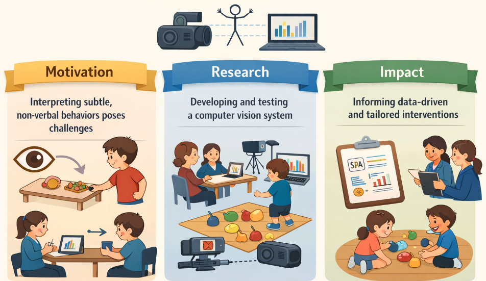 Preference assessments in autism often depend on therapists interpreting subtle non-verbal behaviors, such as gaze, hesitation, body orientation, and reaching, which can make preferences hard to identify consistently. This project addresses that challenge by using computer vision to quantify these behaviors and reduce interpretation bias in choice assessment.