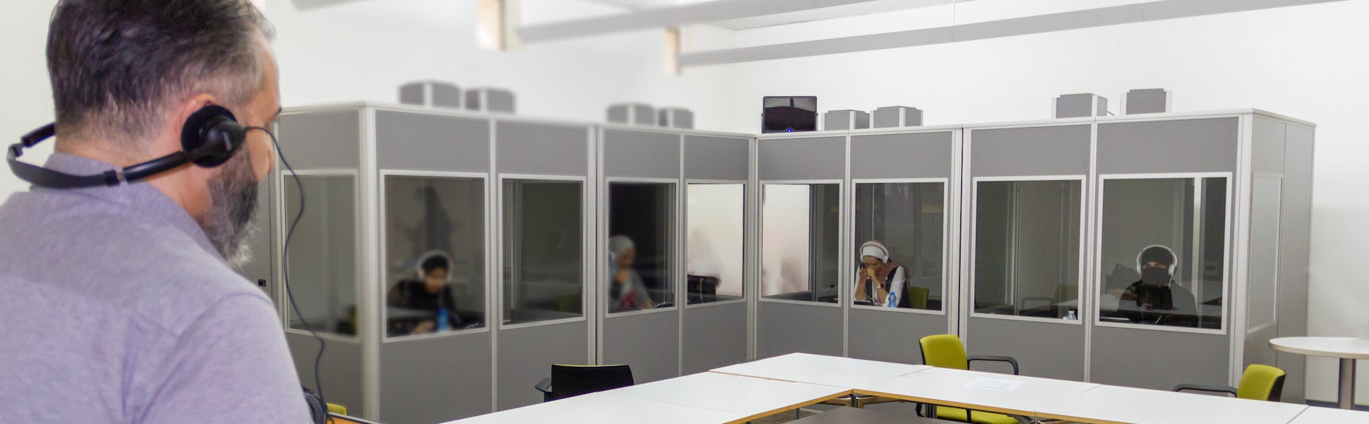 As part of the workshop’s guided practice, workshop participants took part in live interpreting exercises using a variety of texts and accents. They were able to develop their interpreting skills and confidence in an interpreting booth, gaining the foundation to develop the advanced skills used by professional interpreters.