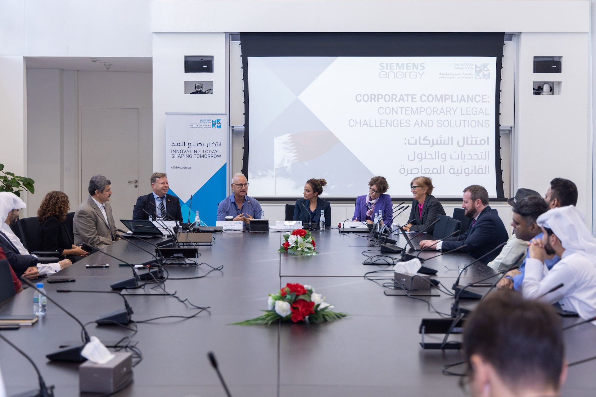 The College of Law at Hamad Bin Khalifa University (HBKU), in collaboration with Siemens Energy Qatar, recently hosted a panel discussion to explore issues faced by corporations in Qatar relating to regulatory compliance. The discussion focused on contemporary legal challenges and solutions.