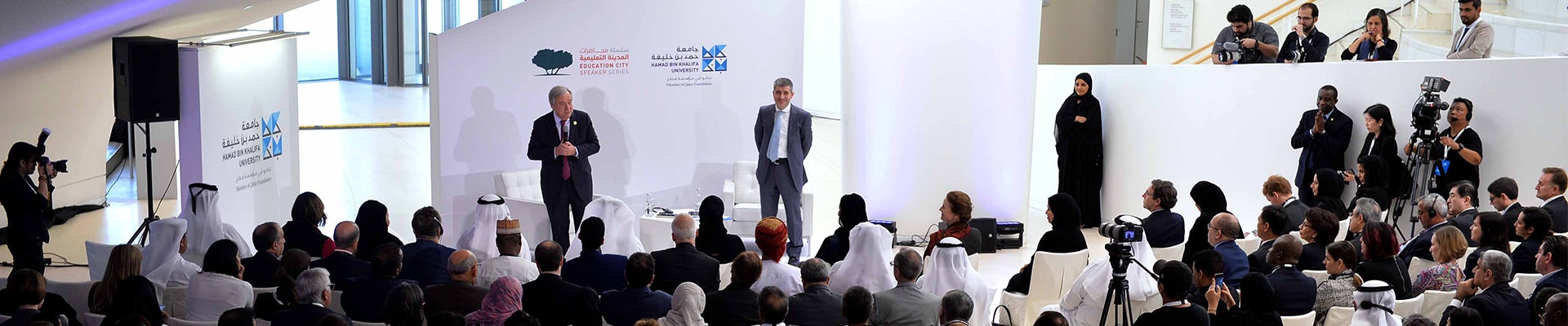 His Excellency António Guterres, Secretary-General of the United Nations, delivered an insightful lecture at Hamad Bin Khalifa University on Sunday, December 16, attracting more than 375 guests, including students, faculty and diplomats. What turned out to be an engaging and very open talk was held under the headline of The Importance of Multilateralism in a Time of Unprecedented Challenges.