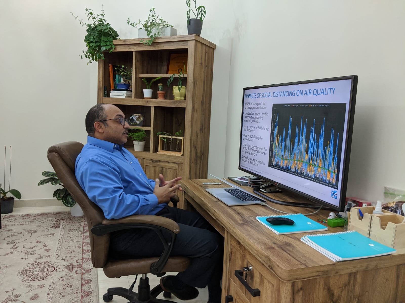 The first webinar titled, ‘Demystifying the Links between the COVID-19 Response and Local Air Quality’, was delivered by Mohammed Ayoub, Senior Research Director at QEERI’s Environment and Sustainability Center. Ayoub discussed the measured decreases in air pollution across greater Doha and potentially gauging the effectiveness of movement restrictions and compliance.