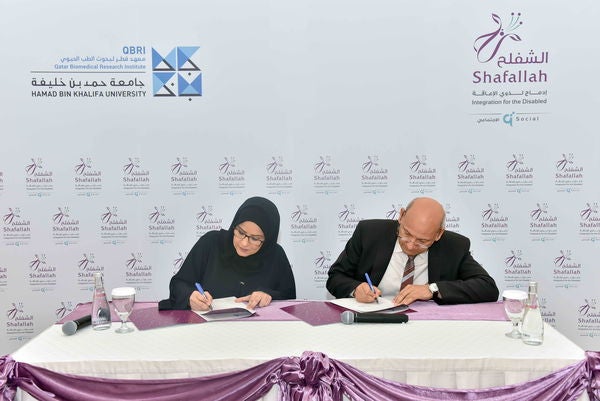 Qatar Biomedical Research Institute (QBRI), part of Hamad Bin Khalifa University (HBKU), today signed a memorandum of understanding (MoU) with the Shafallah Center, a non-profit center dedicated to children with special needs. The agreement will pave the way for the two partners to undertake joint research activities, foster direct contact between specialists, as well as facilitate the use of facilities and equipment for research purposes.